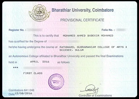 Degrees from Bharathiar University adhere to approved academic standards, making them valid for higher studies and professional use in India and various international contexts, subject to local regulations.