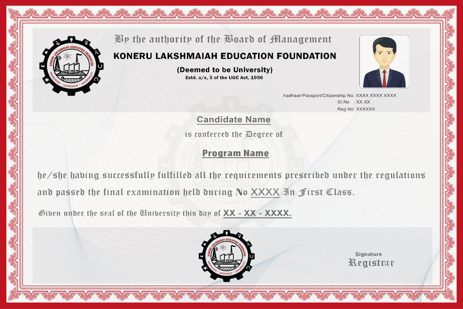 Degrees from Koneru Lakshmaiah Education Foundation University adhere to approved academic standards, making them valid for higher studies and professional use in India and various international contexts, subject to local regulations.