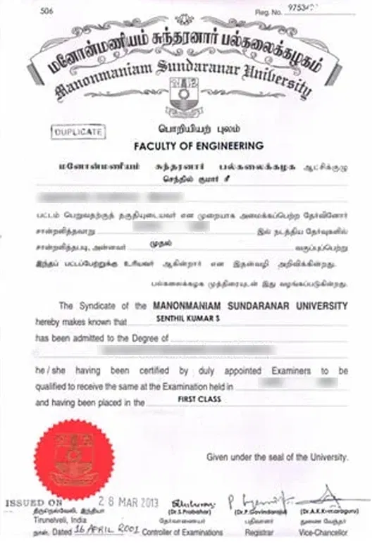 Degrees from Manonmaniam Sundaranar University adhere to approved academic standards, making them valid for higher studies and professional use in India and various international contexts, subject to local regulations.
