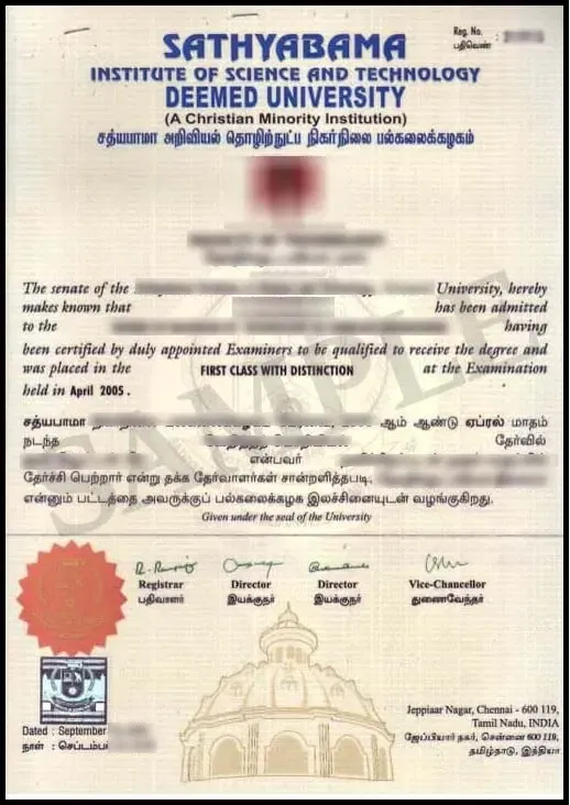 Degrees from Sathyabama Institute of Science and Technology adhere to approved academic standards, making them valid for higher studies and professional use in India and various international contexts, subject to local regulations.